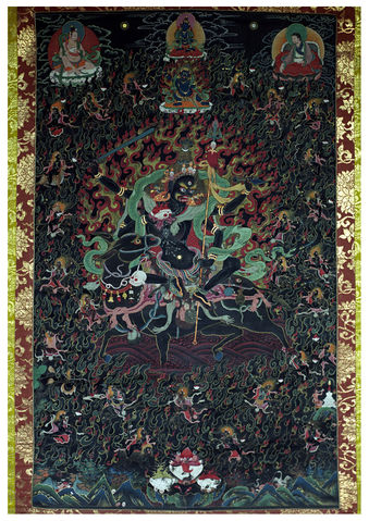 A form of dPal ldan Lha mo (Skt. Śrī Devī). This particular form was the main protector of Marpa Lotsawa. Her name, Dud-gsol-ma in Tibetan, Dhūmavatī in Sanskrit, means 'Smoke Eater' or 'Smoke Consuming Mother'. She is also known simply as dud gsol ma, sometimes spelled dud sol ma. [Erick Tsiknopoulos]